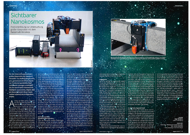 The Swiss high-tech company Nanosurf is one of the leading manufacturers of atomic force microscopes. Together with the Dresden-based positioning specialist Steinmeyer Mechatronik, the Swiss company has created two individual solutions for the examination of particularly large glass samples that are characterized by maximum precision and rigidity..